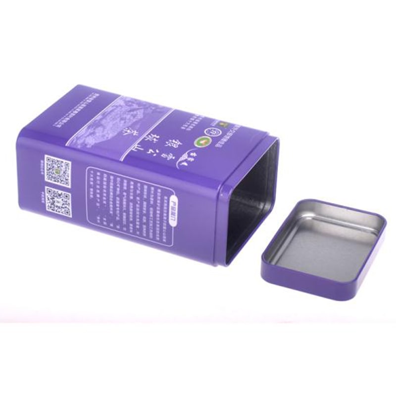 Boîte rectangulaire en fer blanc pour thé à café, taille: 85*85*150mm, Fabriqué en fer blanc de 0,23 mm d'épaisseur, couleur CMJN 4 et impression panton, nous prenons en charge toute personnalisation.