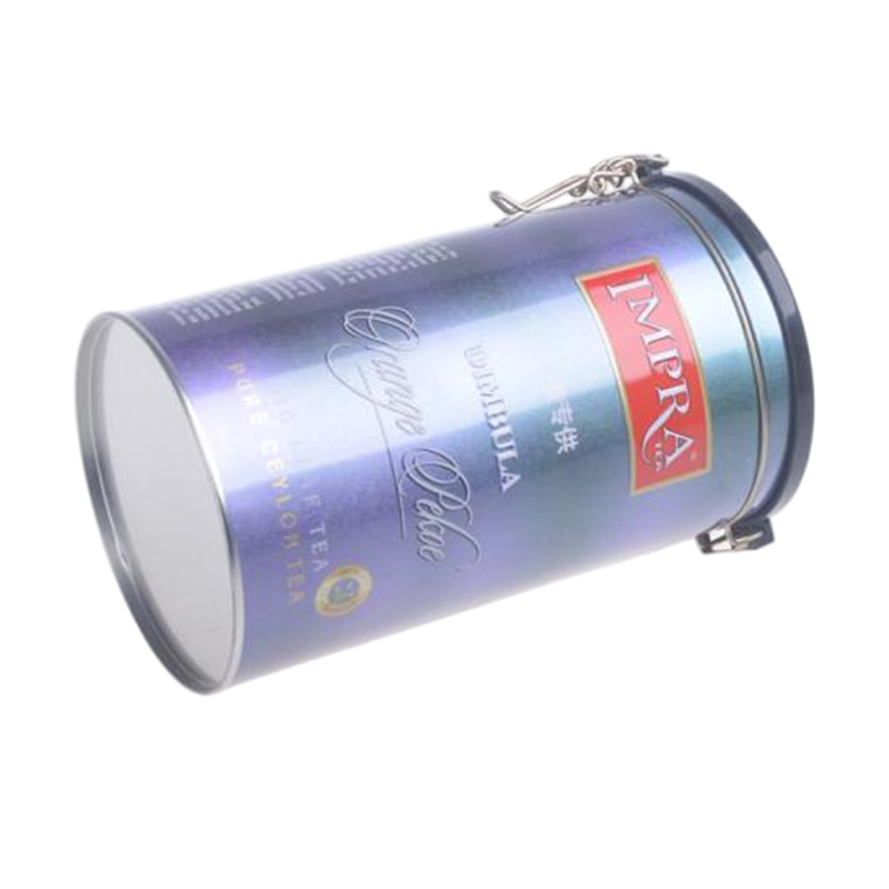 Boîte de conserve hermétique en métal pour café à thé avec loquet de verrouillage, taille: 100 * 160mm, Fabriqué en fer blanc de 0,23 mm d'épaisseur, impression couleur CMJN 4 ou panton, nous prenons en charge toute personnalisation.