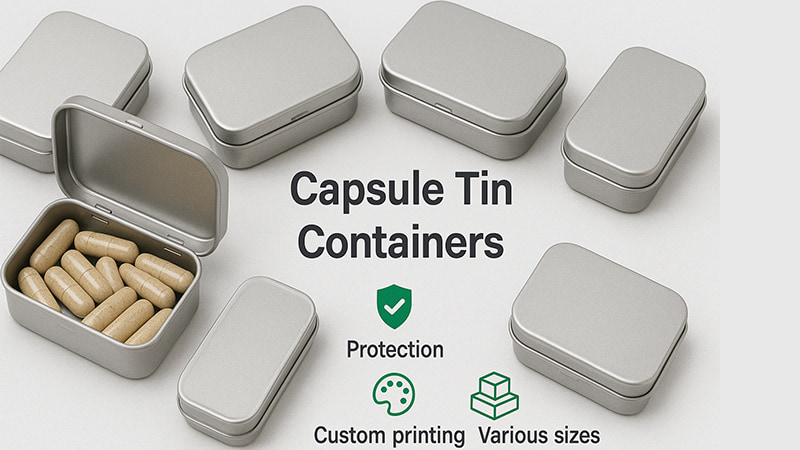 Choosing a reliable tin box manufacturer for custom capsule tin containers ensures FDA-approved supplement packaging that is durable, brandable, and ready for global distributio