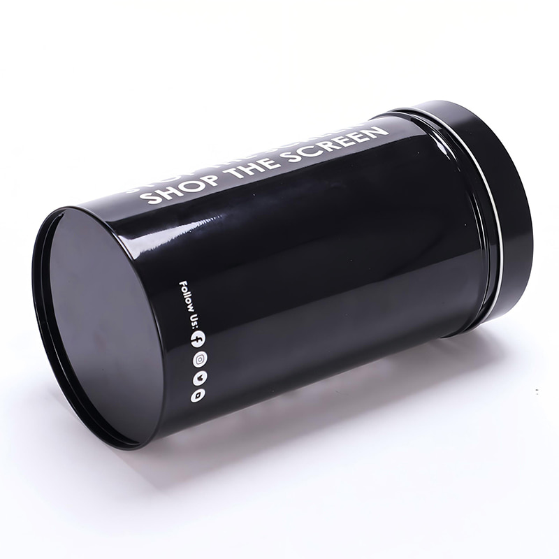 Boîte de conserve en métal à double couvercle, taille: D125 * 165mm, Fabriqué en fer blanc de 0,23 mm d'épaisseur, couleur CMJN 4 et impression panton, nous prenons en charge toute personnalisation.