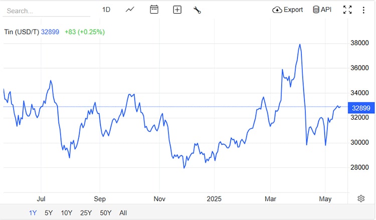 According to the latest market intelligence from Markets Insider, the price of tin hovered around $32,926.00 per metric ton as of May 19th, reflecting slight daily movements that underscore the commodity's sensitivity to market forces. This short-term oscillation comes against a backdrop of significant year-to-date gains. Trading Economics further substantiates this trend, reporting that tin prices have surged by an impressive 12.84% since January 2025, with their expert projections indicating prices could reach $32,222.19 per metric ton by the end of the current quarter. This sustained appreciation highlights a tightening supply coupled with consistent demand.