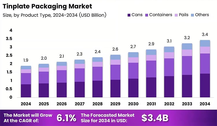 With robust demand drivers, ongoing innovation, and regulatory backing for sustainability, tinplate packaging is well-positioned to continue its growth over the next decade. Its ability to blend durability, design flexibility, and recyclability makes it a valuable packaging material for industries seeking to align with environmental targets.