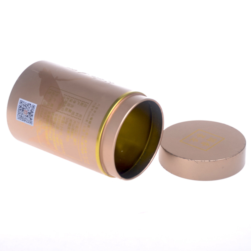 Boîte de conserve en métal à double couvercle, taille: D125 * 165mm, Fabriqué en fer blanc de 0,23 mm d'épaisseur, couleur CMJN 4 et impression panton, nous prenons en charge toute personnalisation.