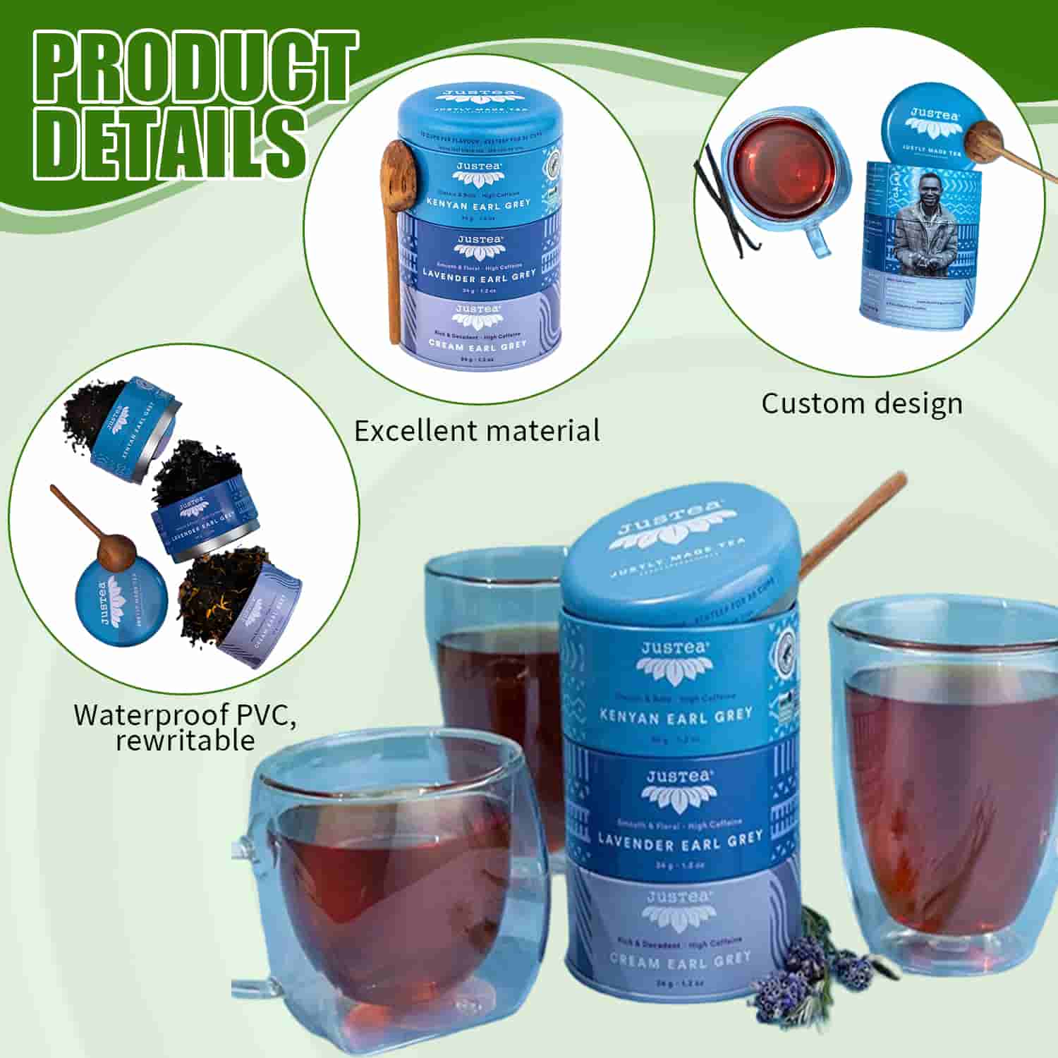 | Freshness-Protecting: Our custom tea tins maintain tea quality by keeping air and moisture out. | ||||